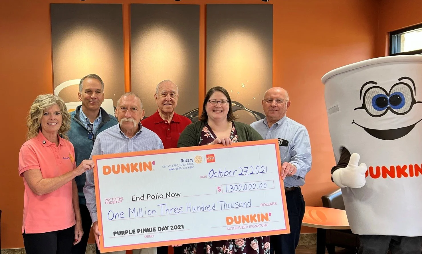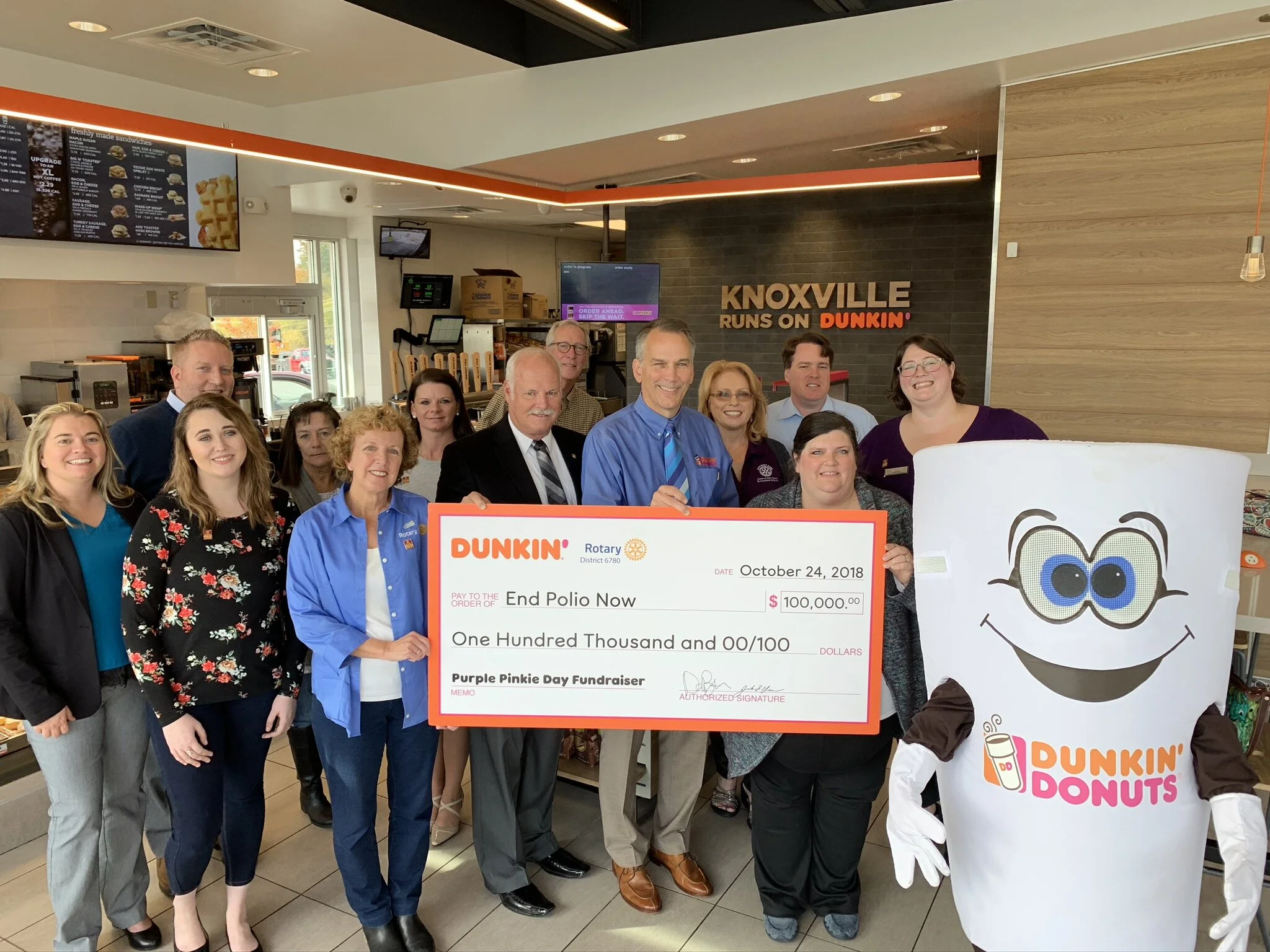 In 2017, Knoxville Rotarian and Dunkin’ franchisee, Dave Baumgartner, started thinking about how he could leverage his 20+ Dunkin’ locations to support World Polio Day and help raise awareness and money to help eradicate Polio world wide.